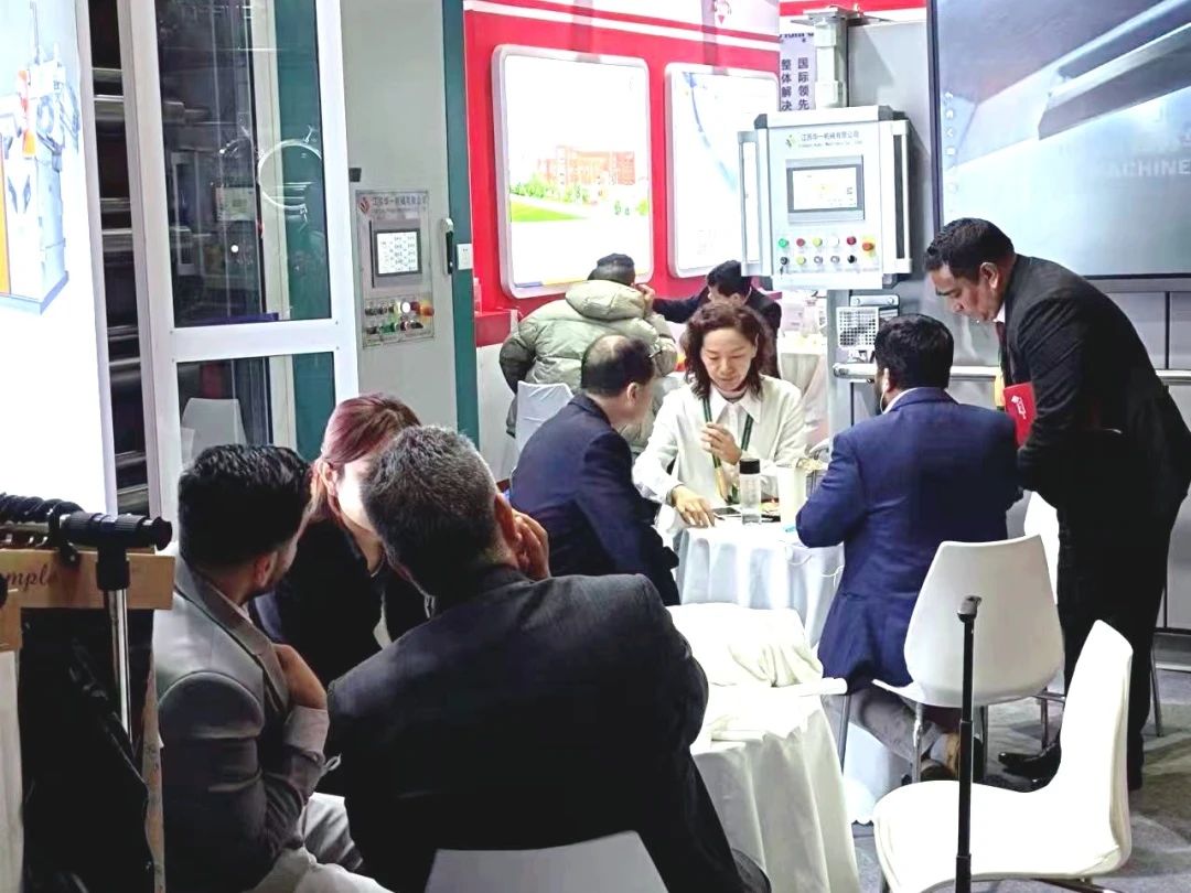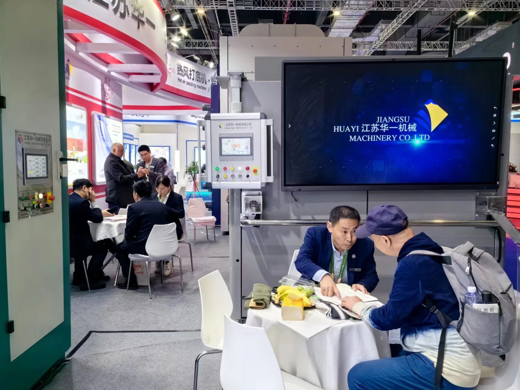 O estande da Jiangsu Huayi Machinery (H5C11) tornou-se o foco da exposição, atraindo ampla atenção de clientes nacionais e estrangeiros.