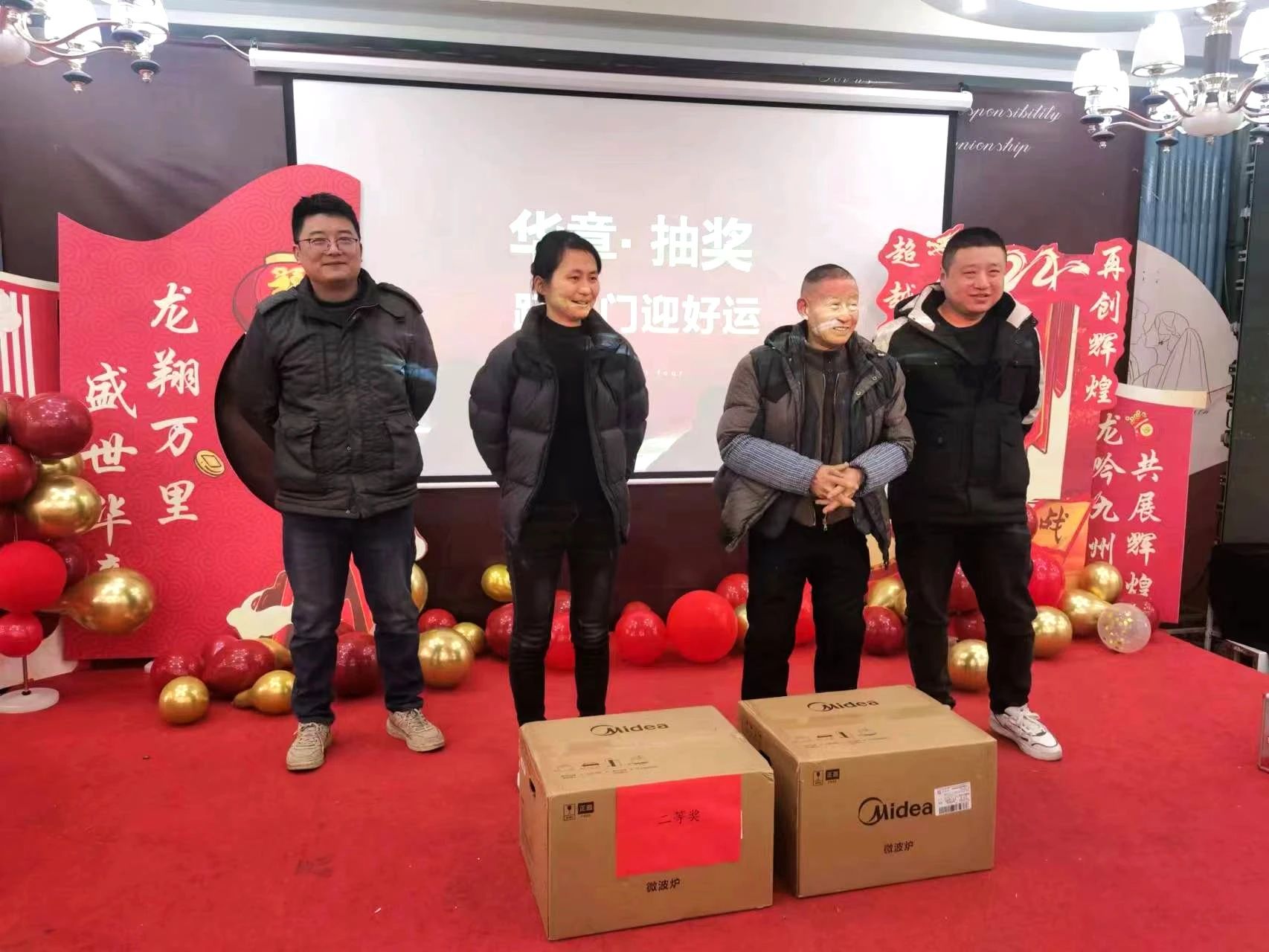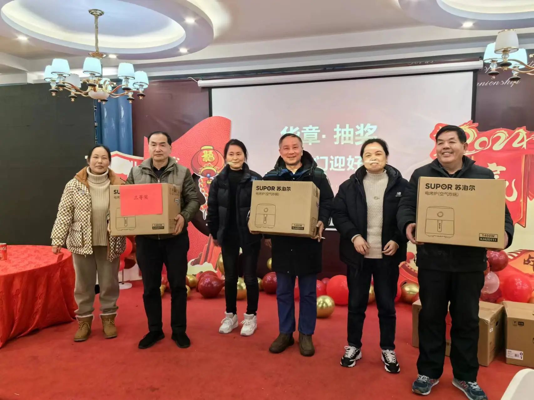 Durante o sorteio, os prêmios de final de ano foram sorteados sucessivamente, com muitas surpresas! Prêmios fabulosos, como fritadeiras, fornos de micro-ondas, geladeiras e muito mais, foram sorteados um após o outro, e cada sorteio foi recebido com aplausos!