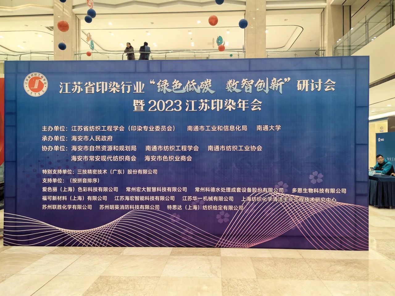 De 3 a 5 de dezembro de 2023, o Seminário "Inovação Verde, Baixo Carbono e Digital" da Indústria de Impressão e Tingimento da Província de Jiangsu e a Conferência Anual de Impressão e Tingimento de Jiangsu de 2023 foram grandiosamente realizados em Hai'an, Jiangsu.