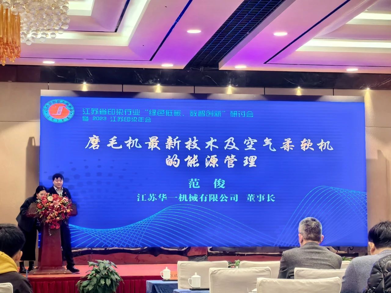 Fan Jun, presidente da Jiangsu Huayi Machinery Co., Ltd., foi convidado pela associação para participar da conferência e fazer um discurso sobre "Tecnologia de máquinas de processamento e gerenciamento de energia de máquinas de amaciamento de ar".