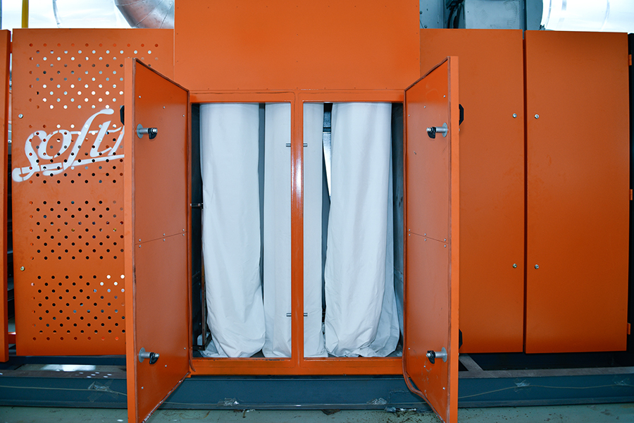 O equipment features a built-in independent vacuum dust removal system, combining five high-pressure nozzles and three specialized brushes to create a dual dust removal effect: powerful airflow and mechanical cleaning. This not only effectively removes fiber debris and dust from the fabric during the softening process, improving fabric quality, but also prevents internal blockages, ensuring long-term stable operation and reducing maintenance and downtime.